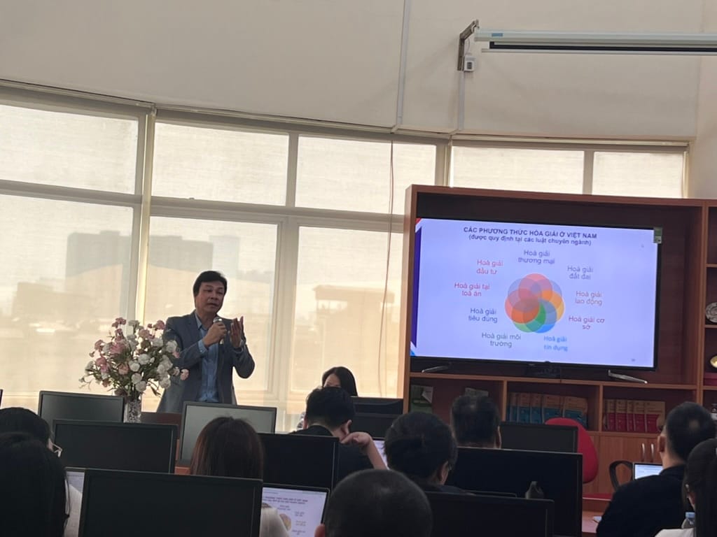 Một số hình ảnh trong chương trình đào tạo về giải quyết tranh chấp thương mại, đầu tư quốc tế thông qua hòa giải tại Học viện Tư pháp:
