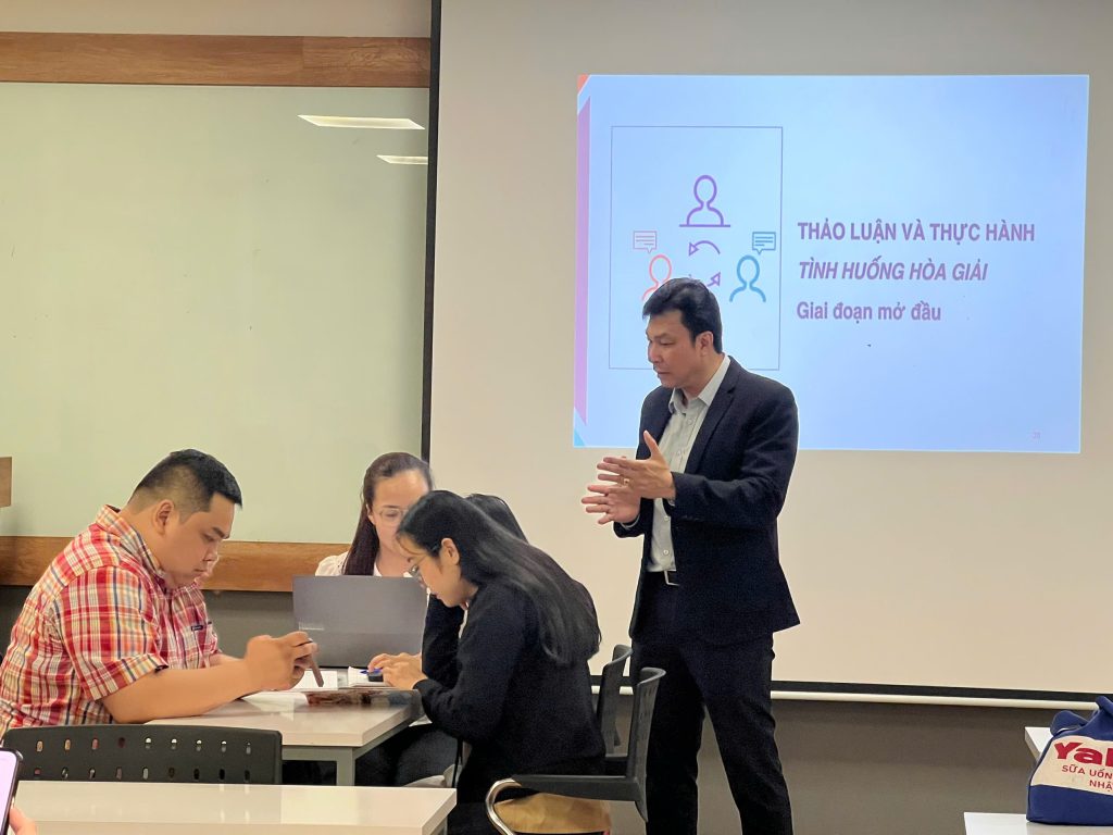 The highlight of the workshop was the skills practice session. Under Mediator. Cuong’s guidance, students participated in a simulation of the Opening Statement phase. This hands-on activity provided students the opportunity to: