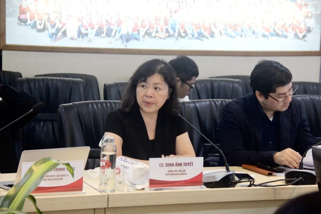 Tại Hội thảo, các diễn giả đã có những bài phát biểu liên quan đến giải quyết tranh chấp đầu tư bằng hoà giải. Cụ thể, LS. Đinh Ánh Tuyết – Thành viên sáng lập và điều hành IDVN, từ kinh nghiệm thực tiễn của mình, đã đưa ra tiềm năng phát triển của cơ chế hoà giải tranh chấp giữa nhà đầu tư và Nhà nước trong các hiệp định đầu tư của Việt Nam.